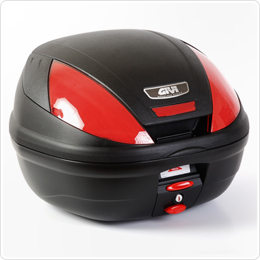 Kufer Givi E370Pojemnosc: 39 litrów.Kolor: czarny mat. + czerwone odblaskiMocowanie: Monolock, kufer centralny.Wlasciwosci: wymiary 480x415x324 mm, waga 4 kg.Akcesoria dodatkowe: oparcie (E109), kolorowe nakladki (C370), swiatlo stop (E108). Akcesoria nie wchodza w sklad kompletu.