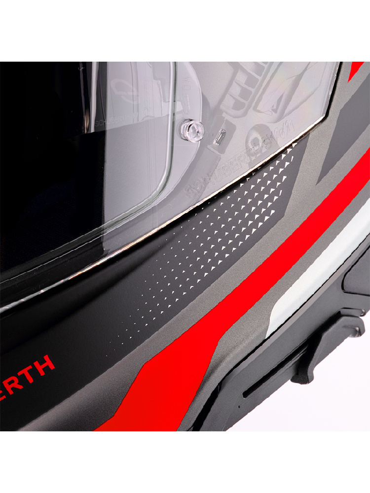 Wyściółka wykonana jest z wysokiej jakości materiałów, które gwarantują nie tylko wygodę, ale także optymalne warunki higieniczne. Jest bezszwowa oraz może zostać wypięta i wyprana. Dzięki technologii Schuberth Individual użytkownik może cieszyć się dopasowaniem na miarę, co zapewnia lepszą stabilność kasku podczas jazdy, jednocześnie minimalizując dyskomfort i tarcie. Wyściółka również sprawnie odprowadza wilgoć, co przyczynia się do utrzymania świeżości i suchości podczas długich podróży. Na szczęce kasku znajdują się 2 wloty powietrza, a 1 z nich posiada wymienny filtr powietrza, który pozwala na prawidłowe oddychanie w ekstremalnych warunkach. Tylny spojler wyposażony jest w wylot ciepłego powietrza i poprawia aerodynamikę oraz stabilność podczas jazdy.